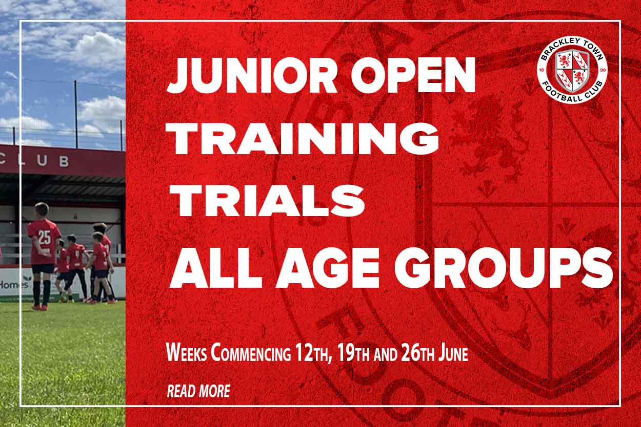 Brackley Town Player Development Centre will be holding open training/trials for our age groups in June.